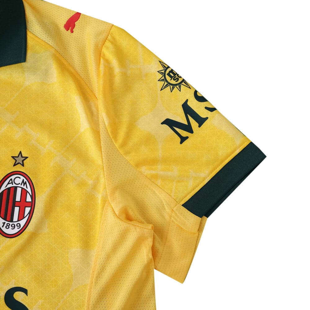 Inspired by Milan’s vibrant legacy and football excellence, the AC Milan Third 2025/26 Player Version jersey brings standout style and functionality to the field. This jersey, crafted for the latest season, features a striking yellow color accented by bold green on the collar and sleeve trim, offering a fresh and energetic look. Designed for those who demand more from their gear, its player version construction means it’s the same cut and material worn by professionals during matches. The lightweight polyester fabric delivers a breathable fit that wicks away moisture, keeping you cool and comfortable when play heats up. Reinforced details at the seams and a slim athletic cut shape the jersey for dynamic movement while retaining sharp lines. The AC Milan crest is stitched proudly on the chest, with the Puma logo and iconic Emirates sponsor graphic rounding out the design for unmistakable authenticity. Whether you’re collecting, cheering from the stands, or hitting the field yourself, this jersey is built for versatility—durable enough to withstand intense matches, yet stylish enough for casual wear outside the stadium. Easy-care fabric maintains its vibrant color and structure season after season. You’ll not only feel part of the game but showcase a timeless connection to one of football’s most celebrated clubs. The 2025/26 Third Player Jersey merges heritage, innovation, and performance, making it a smart pick for any soccer enthusiast or active lifestyle.