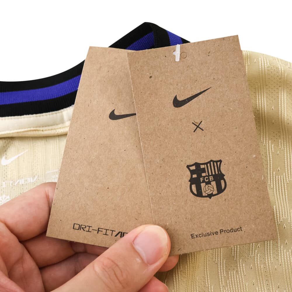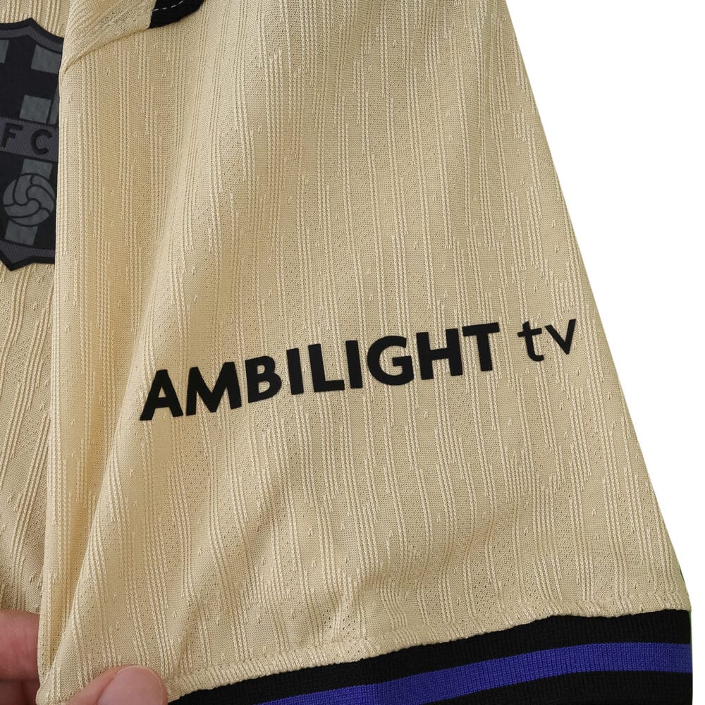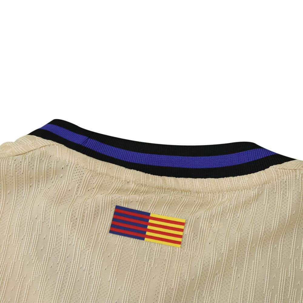 Distinct from the ordinary, the Barcelona Away 2025/26 Player Version jersey captures attention with its striking cream base and bold black details. Designed for genuine fans who demand on-field performance, this player edition mirrors what’s worn by the club’s elite athletes, featuring lightweight fabric engineered for breathability and comfort no matter how intense your day gets. The refined Barca crest stands proudly beside a modern sponsor graphic, adding authentic appeal in every setting—from pickup games to city streets.