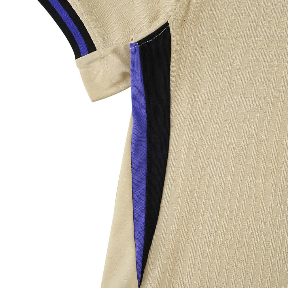 Subtle purple accents around the collar and sleeves elevate its look, while precise tailoring ensures a fit that moves effortlessly with you. Perfect for collectors or those seeking top-caliber gear, this away kit exemplifies style merged seamlessly with sport technology. Enhanced durability and sweat-wicking capability keep you cool under pressure—a true essential for anyone inspired by FC Barcelona’s legacy. Elevate your wardrobe with a statement of loyalty and sophistication.
