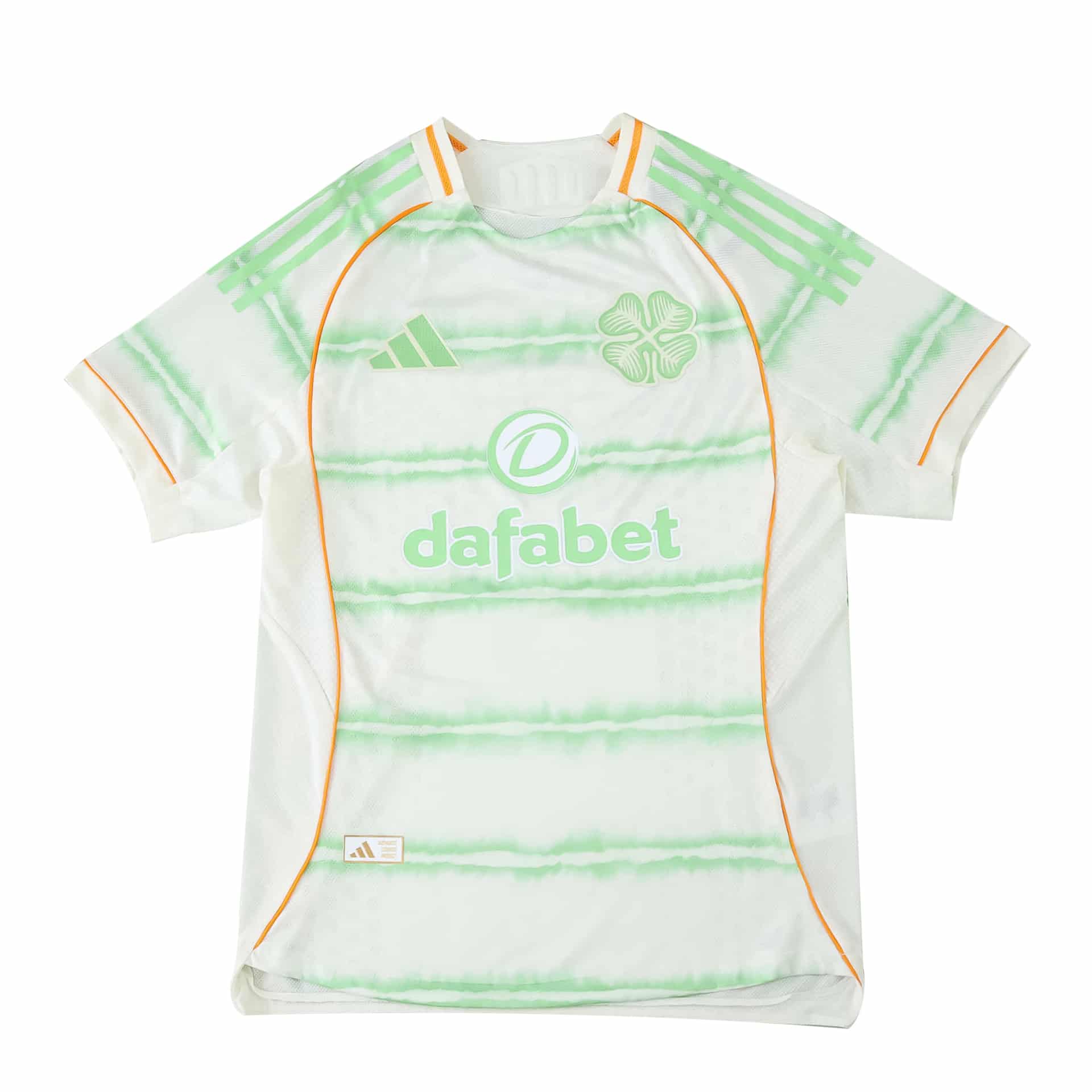 The Celtic Third 2025/26 Player Version Jersey blends athletic performance with heritage style for those who want to feel part of each season’s journey. Designed for match day demands, this jersey features lightweight, breathable fabric that wicks away moisture, thanks to Adidas AEROREADY technology. It delivers a comfortable, close fit inspired by what Celtic players wear on the field, promoting agility and confidence during active play or everyday use. The jersey stands out with its off-white backdrop, pale green tie-dye hoops, and vibrant orange piping, offering a bold look that pays tribute to the club’s distinctive identity. The embroidered four-leaf clover crest and tonal sponsor logo add authentic details that display team loyalty in any setting.