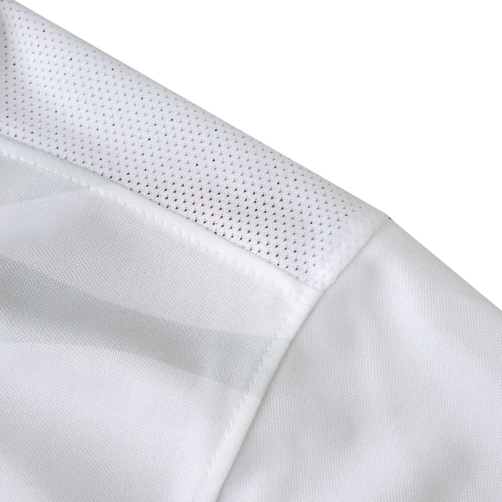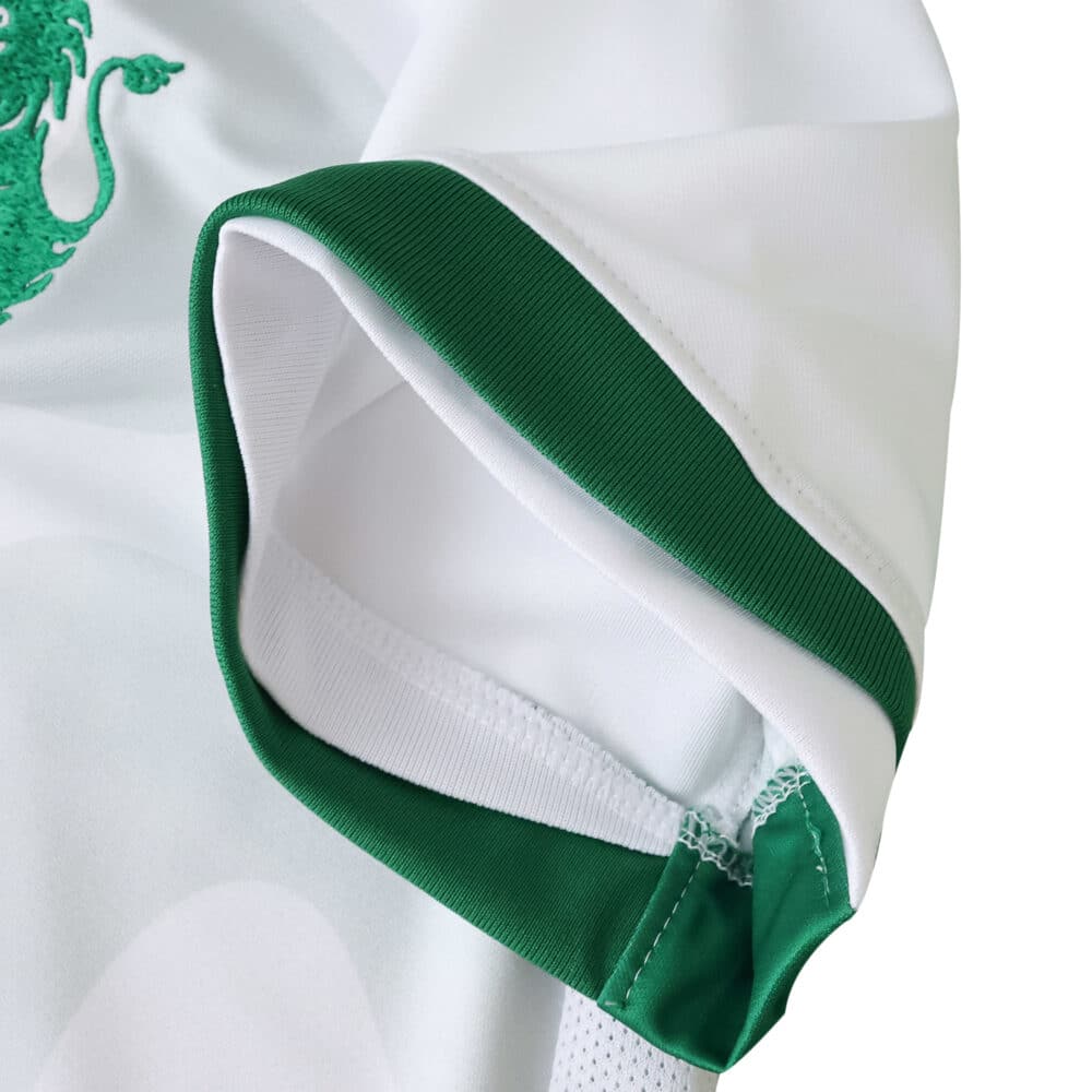 A fresh wave of team spirit arrives with the Sporting CP Away 2025/26 Fan Version Jersey. Showcasing a crisp white base accented by signature green collar and sleeve trim, this jersey thoughtfully blends modern design with timeless club pride. The bold chest features authentic club detailing, including the revered lion crest and sponsor logo, making it instantly recognizable on match day or out in town.