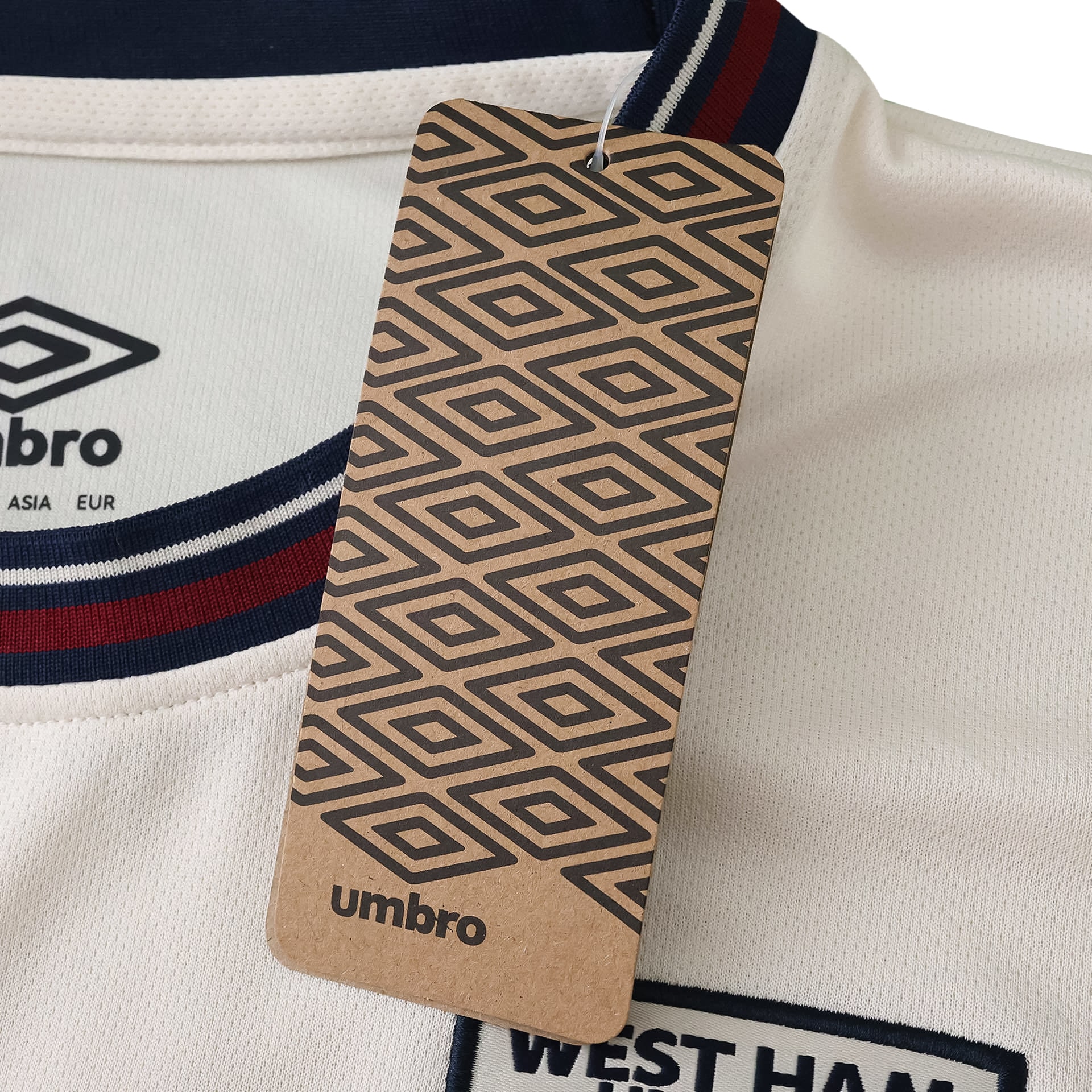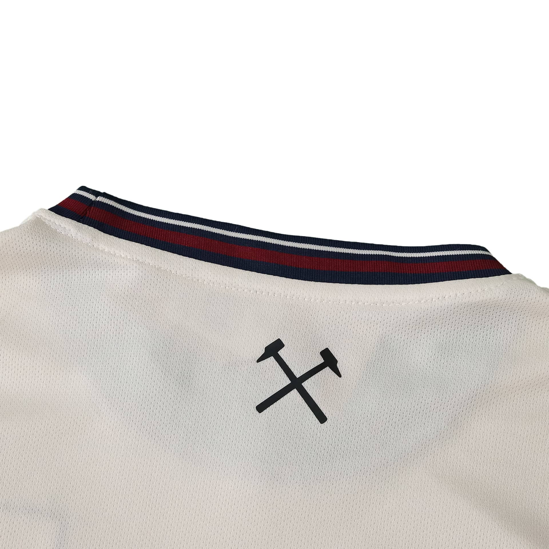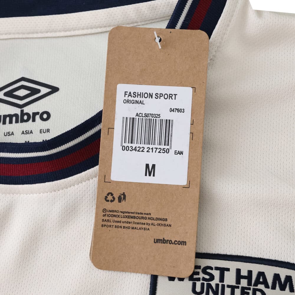 Built for fans looking to show their loyalty, the West Ham United Away 2025/26 Fan Version Jersey draws on classic club style with a clean cream tone, featuring distinct navy and claret trim. Designed to echo the official kit worn by the team during away matches in the current season, this jersey combines historic club identity with everyday comfort. Its lightweight 100% polyester fabric keeps things breathable whether you’re watching the game, meeting friends, or moving through your day. The front boasts the recognizable Boyd Sports sponsor, the Umbro logo, and the streamlined West Ham United crest—a trio highlighting the club’s partnerships and legacy. Detailing on the collar and cuffs nods to the 1996/97 away season, subtly infusing tradition into every wear. The jersey’s regular fit works for a wide range of body types, welcoming all ages and styles while providing plenty of room for layering or casual use. Easy to wash and quick to dry, it holds color and shape, making it a long-lasting piece in any fan’s collection. Wear it during the match, out and about, or at home for a laid-back yet unmistakably club-focused look. For supporters spanning generations, this fan version is about connection to team, history, and community—made to keep up with you all season long.